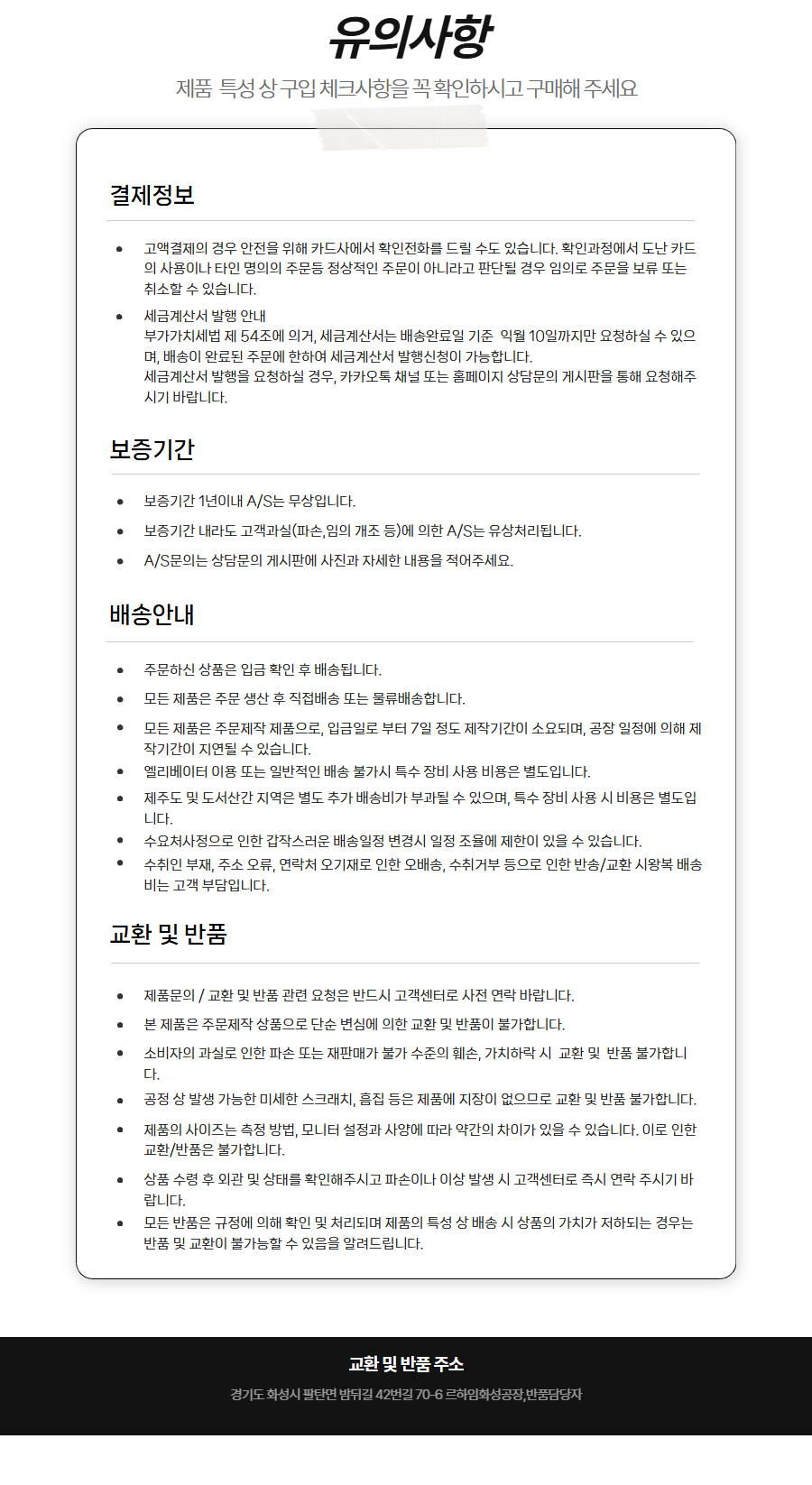 제품의 규격 및 사양, 디자인 등은 품질향상을 위해 사전 예고없이 변경 될 수 있으며, 모든 컨텐츠는 무단 복제 및 도용 시 법적 제재를 받습니다.